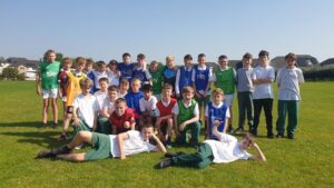Thosaigh na buachaillí agus na cailíní ar ais ag traenáil peile le déanaí. Tá na foirne ag glacadh páirt sa chomórtas peile le Cumann na mBunscoil. Bhí cluiche ag na buachaillí i gcoinne Rathbeggan agus níor éirigh leo sa chluiche sin. Bhí cluiche ag na cailíní i gcoinne Donore agus bhí an bua acu. Míle buíochas don Múinteoir Ciarán agus Múinteoir Shauna atá i bhfeighil ar na foirne agus do Helen atá ag cabhrú chomh maith. Go n-éirí libh leis na cluichí atá fágtha!