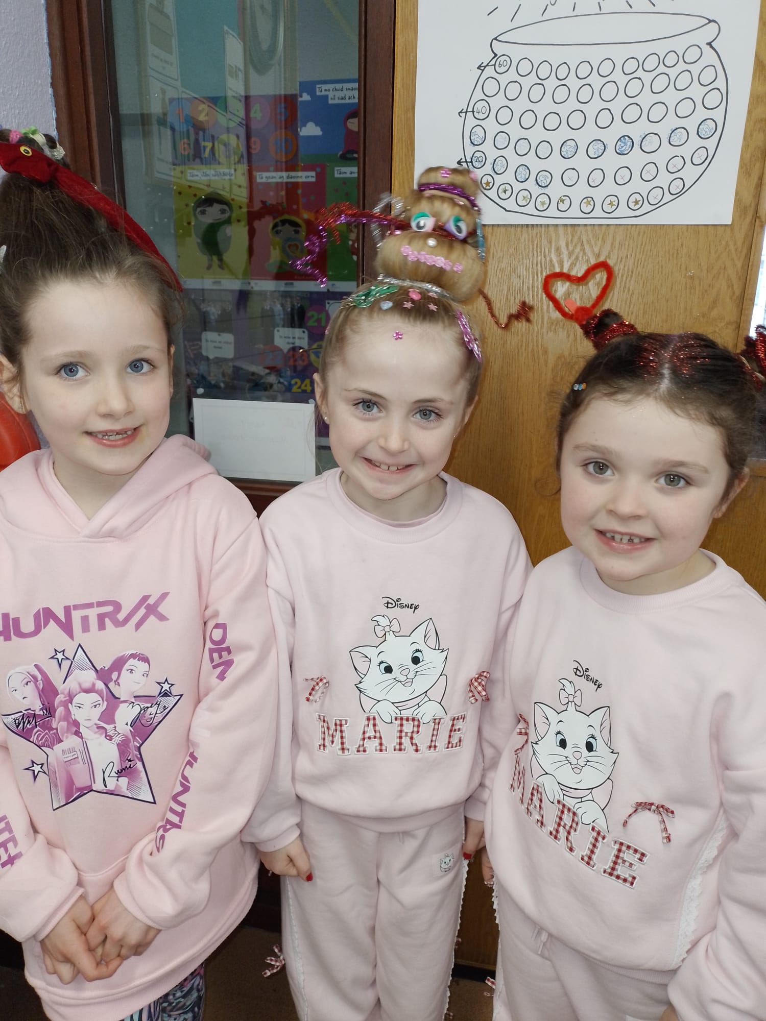 Tháinig na páistí go léir ar scoil inniu agus gruaig craiceáilte orthú. Bhí go leor stíleanna difrúla ann …